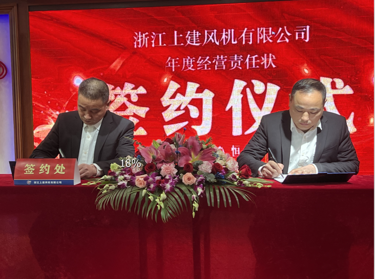 为实现阶段性性经营目标,制定落实2022年各项经营举措。在这个三月初春风送暖之际,浙江ag九游会登陆j9入口风机有限公司举行了简约且不乏庄重的责任制签订大会,公司总经理童海标、各职能模块负责人、车间负责人出席本次会议。