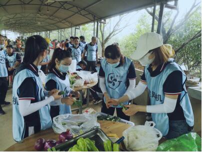 蓝蓝天空,美得不像话吧!大家的心情也像这明媚的阳光一样,到了拓展场地第一件事就是集合,看着一列列方阵多么地整齐,这就是ag九游会登陆j9入口人的风貌!随后营销总监兼拓展教练沈总介绍了上午的拓展任务,厨艺大比拼!当沈总说开始的话音刚落,六支队伍的队员顷刻间化整为零,有的去准备食材、有的拿起锅勺化身大厨、有的点燃烤炉摇身一变成为全场最火热的那个人,场面一下子热闹起来。