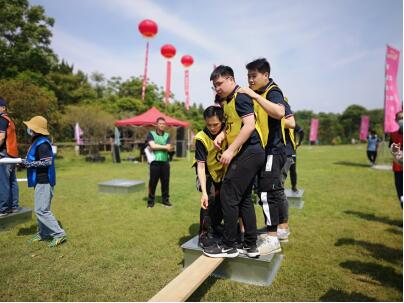 下午是激动人心的拓展游戏时间,孤岛求生、旱龙舟、解手链、蒙眼贪吃蛇、东南西北跑、共绘蓝图一共六个项目。伙伴们都积极参与,玩的很嗨,在面对一些高难度的时候也都没有任何畏惧的情绪,都是直接上。在团队的互帮互助的氛围中,成功完成所有难题。特别在最后需要共同完成80平方米巨画的时候,大家都齐心协力,你调颜料我来画,小组与小组之间互相沟通,以最快的速度完成了任务。